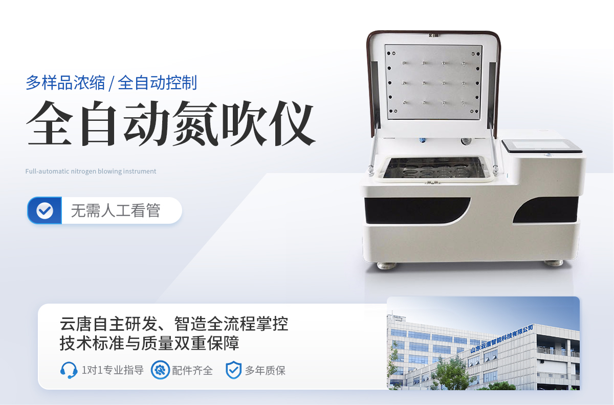 全自動多功能干式氮吹儀HM-QD24是我司結合實驗室使用需求,從使用者方便安全快捷穩定等多角度共同開發的新型濃縮定容產品,產品擺脫了常規市場上利用水浴加熱揮發而導致樣品進行污染的弊端,確定樣品的安全性與準確性,具有無人值守、準確定容、大批量濃縮的特點,可多組數據儲存功能,實現了全自動化的定量及批量濃縮,濃縮全程,讓繁瑣的濃縮過程變得靈活、省心、**和安全。