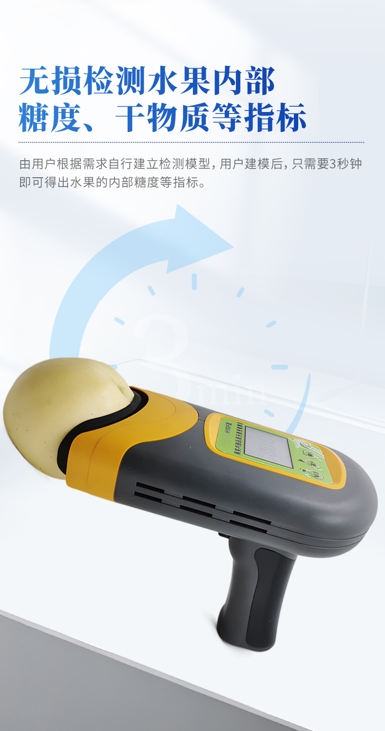 儀器介紹: 果實內部品質無損檢測儀是一款便攜式的果實質量檢測儀,可以方便的檢測水果內部的糖度、干物質等指標,由用戶根據需求自行建立檢測模型,用戶建模后,只需要3秒鐘即可得出水果的內部···