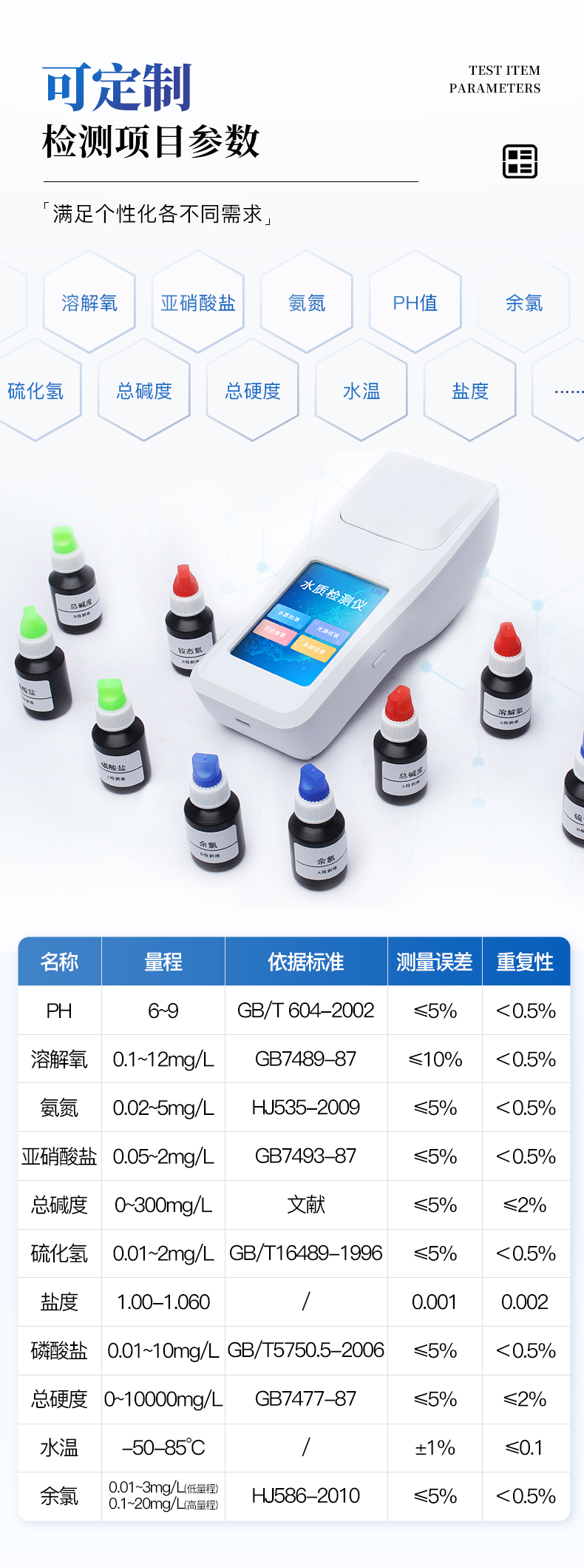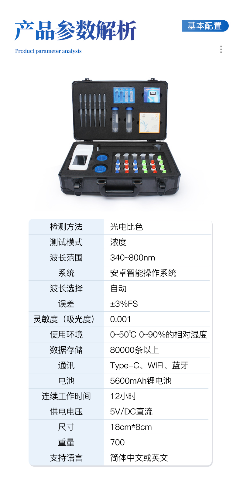 設(shè)備簡(jiǎn)介: 云唐YT-SS9型便攜式水質(zhì)檢測(cè)儀是一款適用于工業(yè)污水、水產(chǎn)養(yǎng)殖、河流監(jiān)測(cè)、游泳場(chǎng)館等領(lǐng)域的檢測(cè)儀,配合快速顯色檢測(cè)試劑,可“快速、簡(jiǎn)單、準(zhǔn)確、穩(wěn)定”進(jìn)行測(cè)量,擁有精美的外觀造···