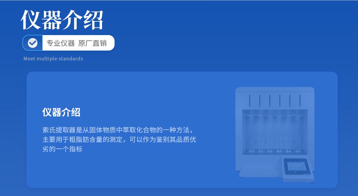 產品介紹: 索氏提取器是從固體物質中萃取化合物的一種方法,主要用于粗脂肪含量的測定,廣泛存在于提取糧食、飼料、油料、土壤,毛脂等各種樣品脂肪的含量,可以作為鑒別其品質優劣的一個指標,···
