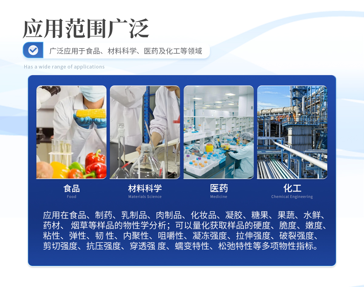 產(chǎn)品簡(jiǎn)介: 質(zhì)構(gòu)分析儀是一款集高精度與多功能性于一體的科學(xué)儀器,廣泛應(yīng)用于食品、材料科學(xué)、醫(yī)藥及化工等領(lǐng)域,用于全面而**地評(píng)估材料的質(zhì)構(gòu)特性、稠度、硬度及結(jié)構(gòu)強(qiáng)度。該儀器通過(guò)多樣化···