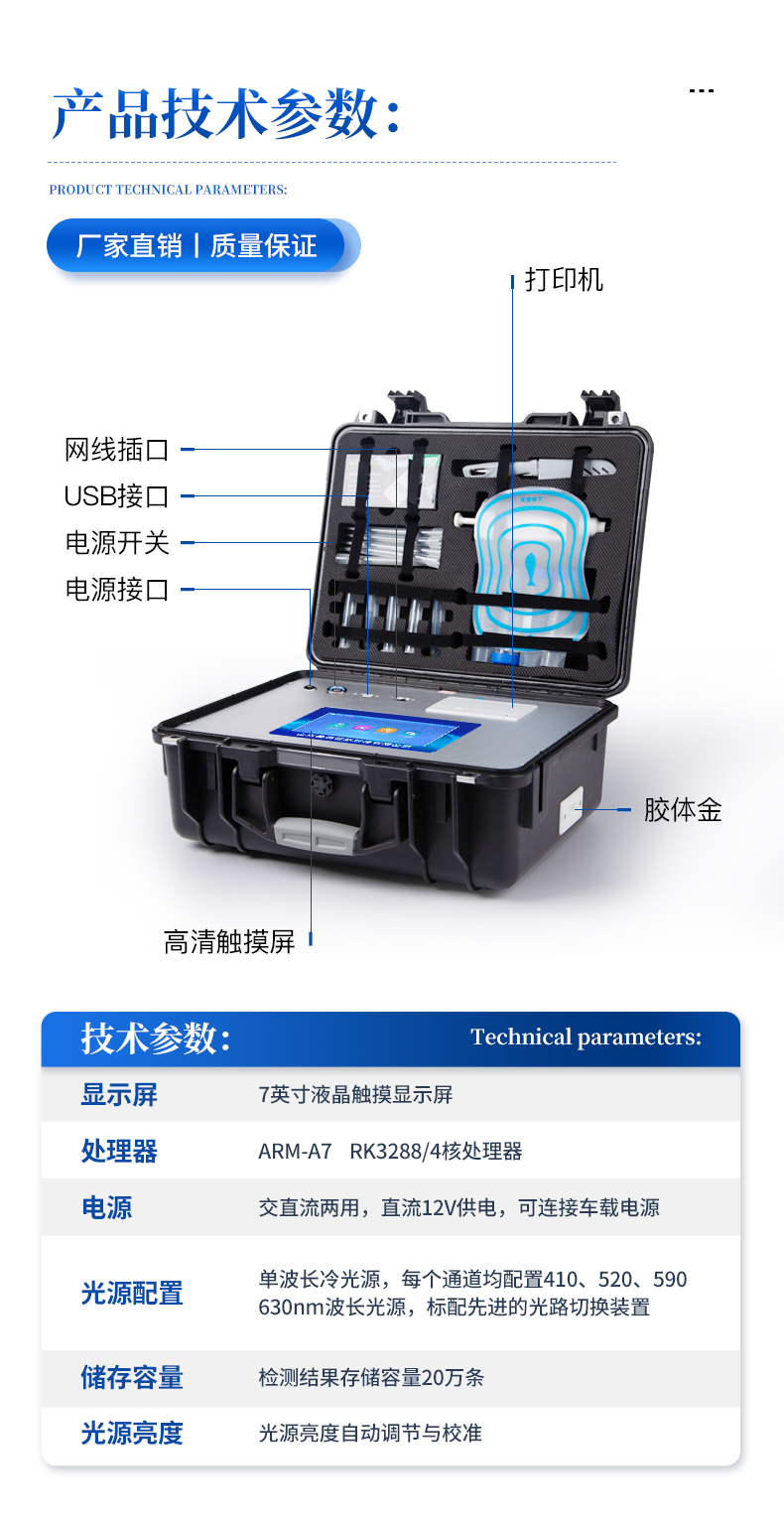 | 用途:可用于糧食谷物及其制品、飼料、植物油中真菌毒素快速定量測定; | 檢測方法:采用發(fā)光定量免疫層析技術,激光激發(fā),掃描方式收集發(fā)光熒光信號。 | 定量參數(shù)設定:RFID芯片記錄檢測目標的標準曲線,根據(jù)不同樣本類型配備多參數(shù)卡; | 識別功能:試劑插卡后儀器自動識別檢測項目; | 靈敏性和特異性:不受外界的背景干擾, 檢測限為0.4-4500ug/kg;對其它毒素無非特異反應; | 穩(wěn)定性:無淬滅和光漂白現(xiàn)象; | 檢測時間快,實時顯示檢測曲線 | 無需孵育器,室溫(15-30℃)下進行測試 | 數(shù)據(jù)獲取和處理:檢測結果自動獲取(無需目測),可實時打印檢測報告;數(shù)據(jù)可儲存,可導出。 | 儀器可靠:有開機系統(tǒng)自檢功能;儀器配有質(zhì)控卡,確保檢測系統(tǒng)自身的準確性; | 檢測數(shù)據(jù)精準可靠:HPLC/LC-MS結果接近 | 檢測儀器獲得國家認證 | 聯(lián)網(wǎng):網(wǎng)絡接口 | 升級:可以通過U盤進行軟件升級 | 存儲空間:≥32G,**擴展至64G | 工作功率:40W | 操作系統(tǒng):windows 7 | 顯示屏:可觸摸顯示屏,屏幕尺寸≥8寸 | 定量檢測項目:包括黃曲霉毒素B1、嘔吐毒素、玉米赤霉烯酮、T-2毒素、伏馬毒素 |