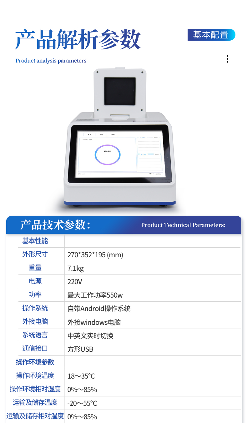 產品簡介:本款轉基因PCR檢測儀專為大豆、玉米、水稻等農產品定制,基于實時熒光定量技術,快速精準檢測轉基因成分。便攜易用,快速出結果,適配田間、種子篩選等場景,為種植合規與品質管控提供···